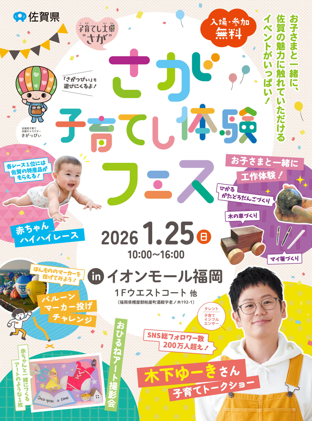 こどもたちが骨太で健やかに成長できる環境のもと「佐賀で楽しく子育てしたい!」とたくさんの方に思ってもらえるように、佐賀県では、